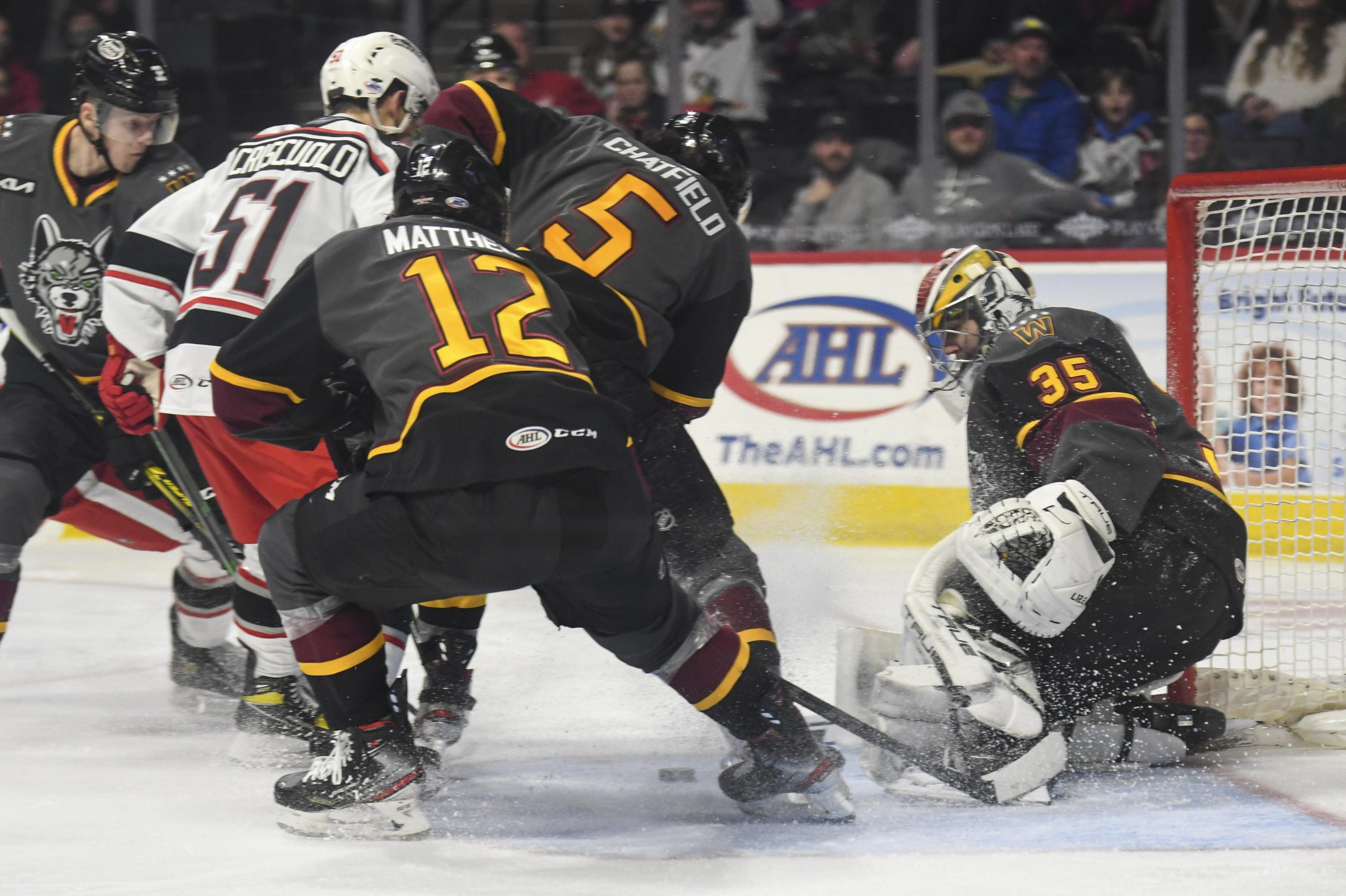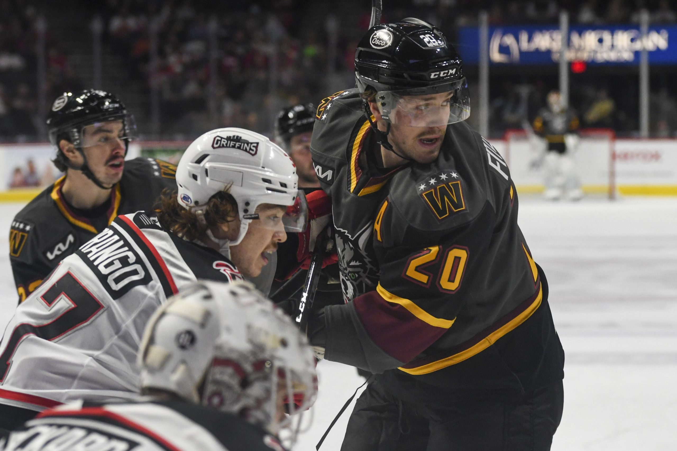 The Wolves applied all of the pressure during the first half of the second period. After extended possession time in Grand Rapids’ zone, veteran forward Stefan Noesen thought he scored 10:41 into the frame, but the officials reviewed the video replay and declared no goal. Meanwhile, Chicago’s defense didn’t allow Grand Rapids any shots on goal until 11:49 passed in the period.
