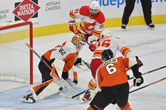 PHILADELPHIA — The Calgary Flames came out of the gate with a vengence on Tuesday night, scoring four goals in the opening frame to send the Flyers to a 6-3 loss.
