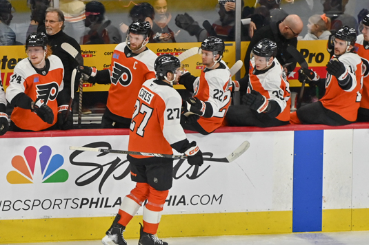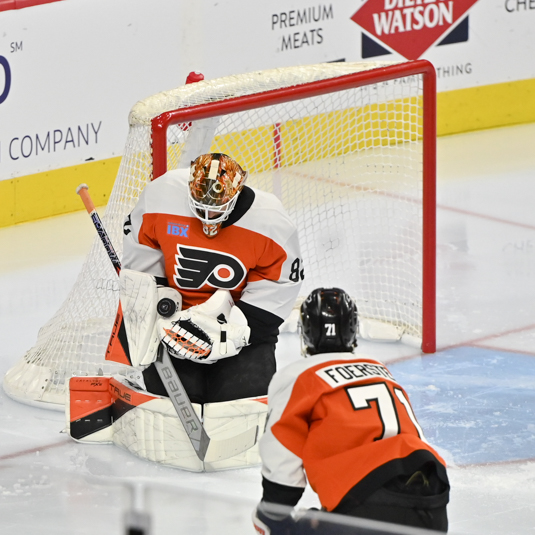 Matt Coronato hit an empty net with 61 seconds left on the clock for the 6-3 final count on the scoreboard. Samuel Ersson got the start for the Flyers but was given the hook after surrendering three goals on just five shots.