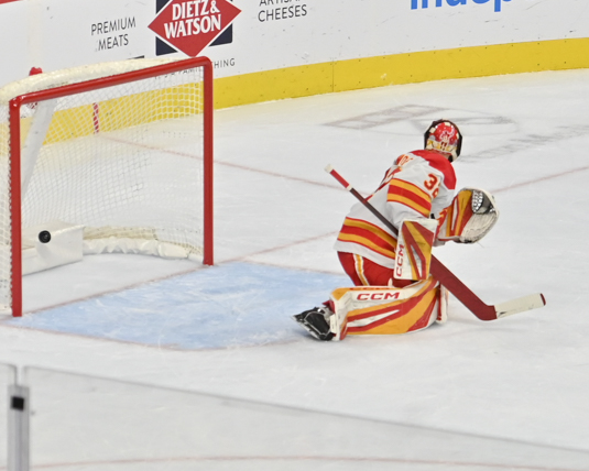 Dustin Wolf made 25 saves in the Calgary win.