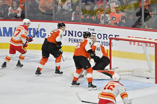PHILADELPHIA — The Calgary Flames came out of the gate with a vengence on Tuesday night, scoring four goals in the opening frame to send the Flyers to a 6-3 loss.