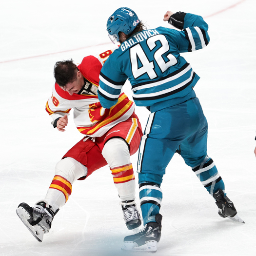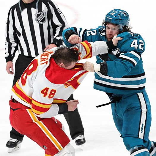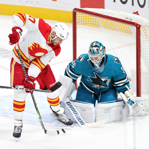 Dillon Dube gave the Flames a 5-1 lead at 2:10 of the third to complete the outburst that buried the Sharks.
