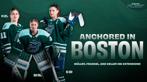 “We’re thrilled to have Aerin Frankel, Megan Keller, and Alina Müller signed through the 2027–28 season,” said Fleet General Manager Danielle Marmer. “These are three of the best players in the world at their respective positions and having them committed to Boston gives us an elite core to build around. Aerin is the backbone of our team, and we have a chance to win every single night with her in net. Megan is the fabric of our identity and represents everything we love about Boston hockey by being physical, relentless, and reliable at both ends of the ice. Alina has one of the highest hockey IQs in the game and sees the ice incredibly well, elevates everyone around her, and will be a key driver of our offense. With this group leading the way, we’re in great hands for the next three years. Beyond their talent, these are leaders who represent what it means to be part of the Boston Fleet. Their legacy is already being written here, and we know our fans will be proud to continue cheering them on for years to come.”
