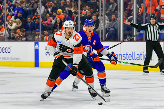 PHILADELPHIA – The Flyers’ Morgan Frost scored with 10 seconds left on the game clock to tie the New York Islanders, 3-3, and force extra time on Monday night.