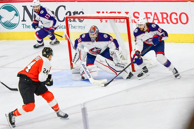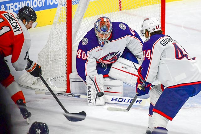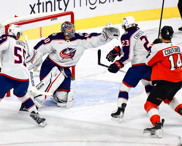 “I thought he was outstanding tonight,” Blue Jackets coach Pascal Vincent said. “The 5-on-3, guys in front of him did a good job, but at the end of the day, your goalie has to be your key player, especially in the 3-on-5 and he was really good from start to finish.”