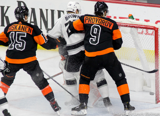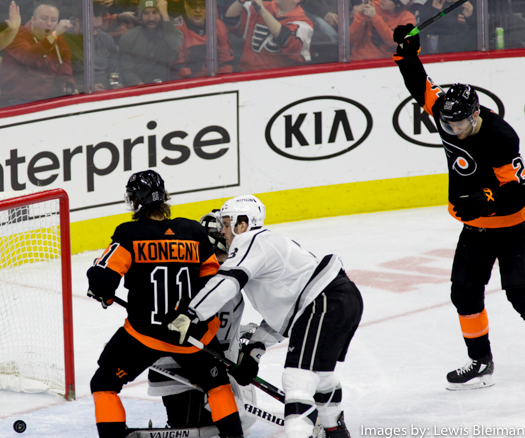 Travis Konecny struck twice and and Joel Farabee added a single marker in the home win.