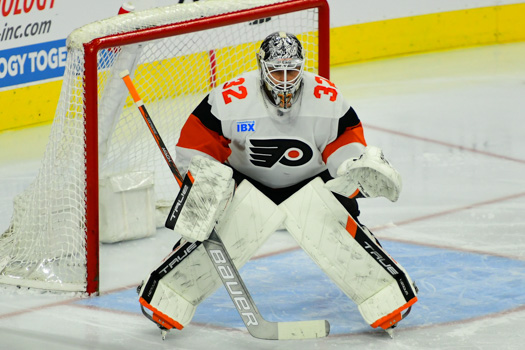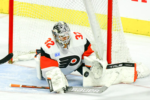 Felix Sandstrom #32 of the Philadelphia Flyers