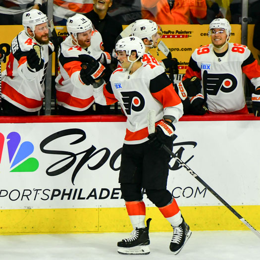 Noah Cates #27 of the Philadelphia Flyers