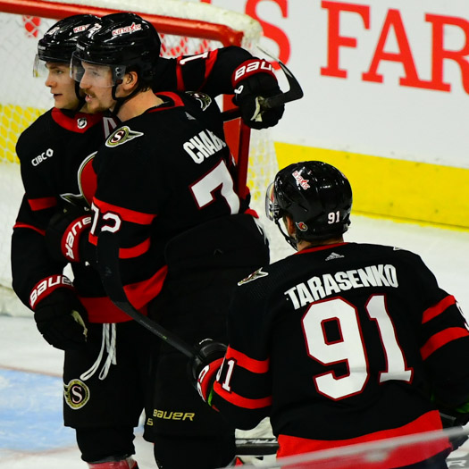 Thomas Chabot trimmed the deficit to 3-2 for Ottawa with under two minutes left on the game clock.