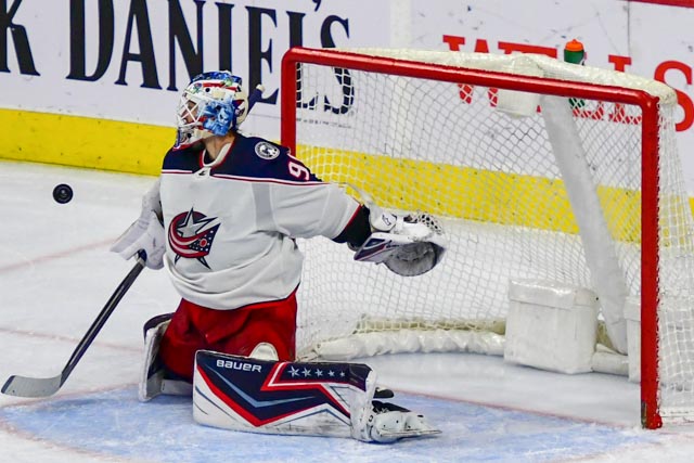 Elvis Merzlikins made 47 saves in the Blue Jackets win.