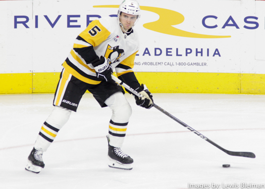 NHL 2023- DEC 4 PIT vs PHI Published December 4, 2023 at 525 × 375 in Flyers down Pens, 2-1, in OT Ryan Shea #5 of the Pittsburgh Penguins