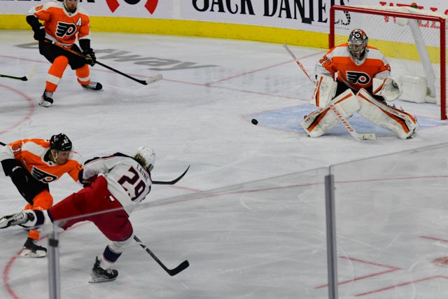 After a scoreless first period, Oliver Bjorkstrand put Columbus up, 1-0, at 11:53 of the middle frame.