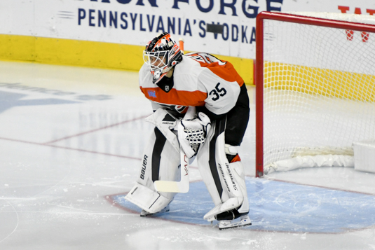Aleksei Kolosov #35 of the Philadelphia Flyers