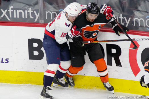 NHL 2021 Mar 13,WSH vs PHI Published March 13, 2021 at 525 × 350 in Flyers drop back end of pair to Caps, 5-4 Daniel Sprong #10 of the Washington Capitals checks Ivan Provorov #9 of the Philadelphia Flyers