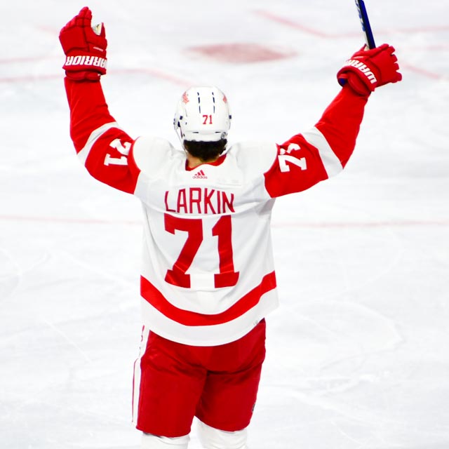 Dylan Larkin scored the game’s first goal, off the power play, to give the Red Wings a 1-0 lead in the first period.