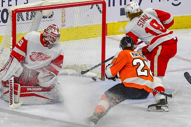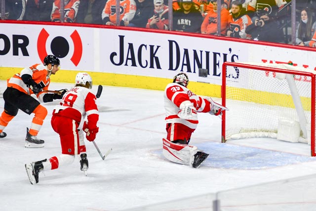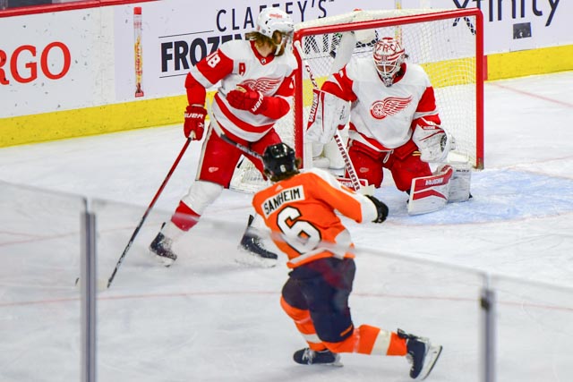 PHILADELPHIA – Alex Nedeljkovic made 21 saves as the Detroit Red Wings doubled-up the Flyers, 6-3, on Wednesday night.