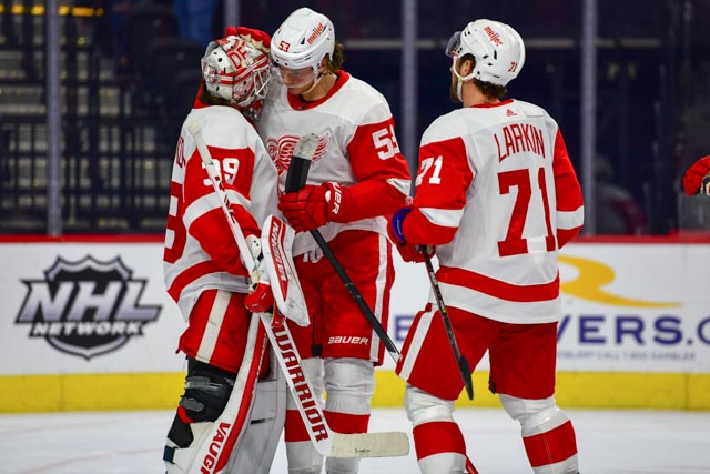 “Everyone can score,” the Red Wings’ Seider said. “We have a really good lineup. Guys are chipping in. We’re really happy with the [win] tonight.”