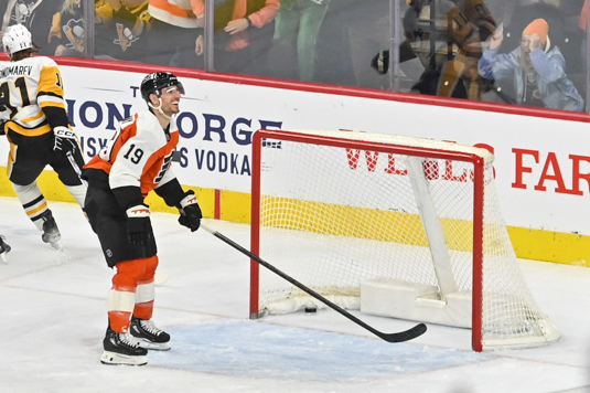 The Flyers took a 1-0 lead in the first period on a strike by Scott Laughton at 1:44.