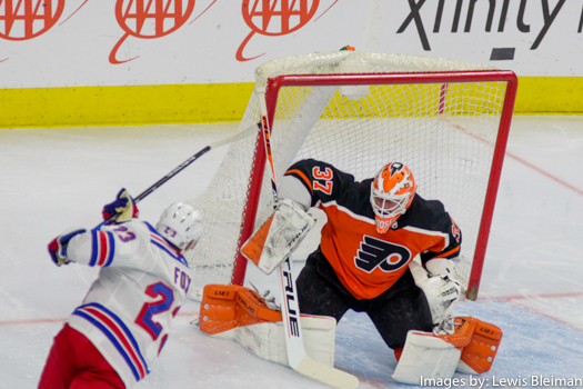 NHL 2021 Mar 27 NYR vs PHI Published March 27, 2021 at 525 × 350 in Flyers get one back form the Rangers Brian Elliott #37 of the Philadelphia Flyers deflects a shot by Adam Fox #23 of the New York Rangers