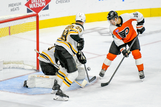 NHL 2024_November 02, Philadelphia Flyers vs Boston Bruins Published November 2, 2024 at 535 × 357 in Flyers get skunked by Bruins, 3-0 Bobby Brink #10 of the Philadelphia Flyers looks for the rebound