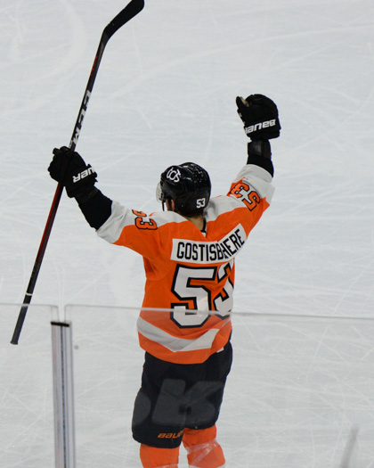 DSC_4560 Published March 10, 2021 at 420 × 525 in Flyers need extra time and more to defeat Sabres, 5-4 Shane Gostisbehere #53 of the Philadelphia Flyers celebrates his goal in the third period