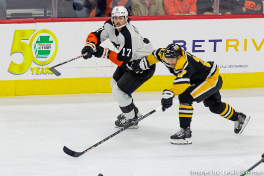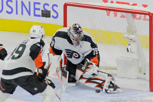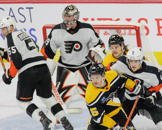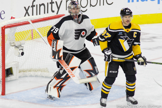 Carter Hart got the start for Philadelphia, and made 17 saves, yielding all four Pittsburgh goals.
