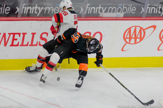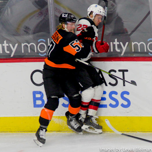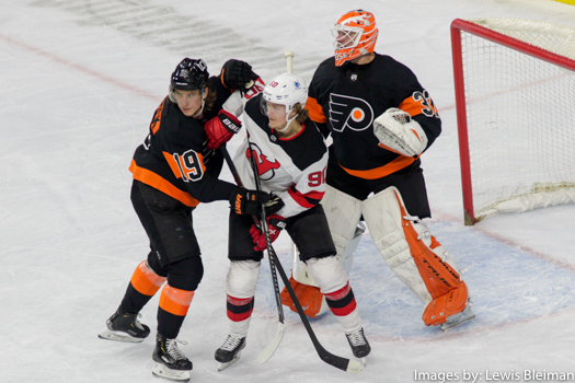 PHILADELPHIA – With less than two minutes left on the game clock, and trailing by two, Claude Giroux scored twice, 22 seconds apart to get the Flyers even with the New Jersey Devils at 3-3.