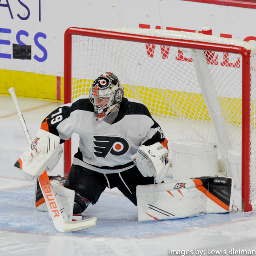 Carter Hart made 39 saves for the game, including 19 in the third period.