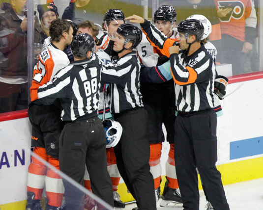 In the middle frame, Travis Konecny and Noah Cates (power pla( scored for the Flyers for a 4-1 advantage.