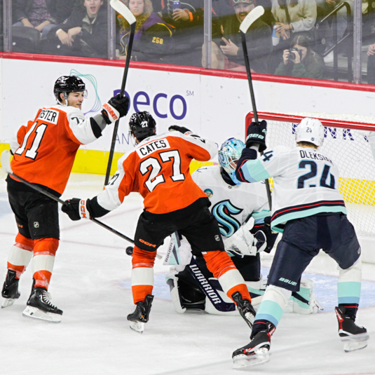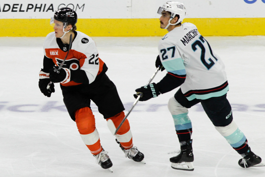 PHILADELPHIA – Owen Tippett hit for a double on Monday night to lead the Flyers to a 5-2 win over the visiting Seattle Kraken.