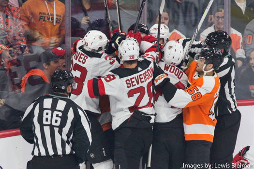 PHILADELPHIA – Travis Konecny and Morgan Frost each hit for a double on Thursday night as the Flyers defeated the New Jersey Devils, 5-2, in the opener for both teams.