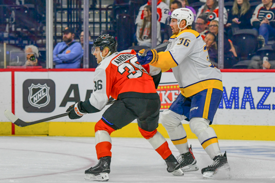 PHILADELPHIA — The Flyers Trevor Zegras hit for a double and collected three points on Thursday night in a 4-1 win over the vising Nashville Predators.