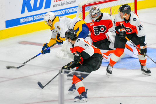 “I just try to play a good game every time I go out there and feed off my teammates that are doing the right things,” Zegras said. “I thought Dan (Vladar) played unbelievable tonight, kept us in it for the first couple periods until we found our legs a little bit. Another two big points at home.”
