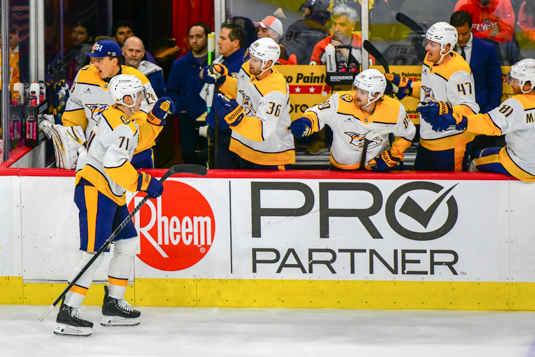 Matthew Wood was the lone striker for the Predators, he picked up his first career NHL goal.