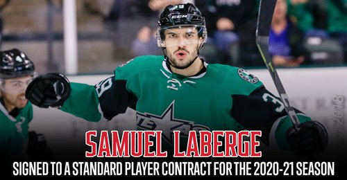 Laberge, 23, spent time with the Texas Stars of the American Hockey League, collecting 22 points (8 goals, 14 assists) skating in 97 games. The Châteauguay, Quebec native also appeared in two ECHL games with the Idaho Steelheads during the 2017-18 season.