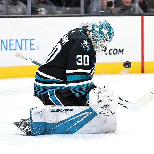 Duehr scored his first as a member of the Sharks at 8:12 to cut the lead to 3-1. Mario Ferraro’s shot from the center point was deflected twice, first by Nikolai Kovalenko and then by Duehr over Annunen’s blocker.