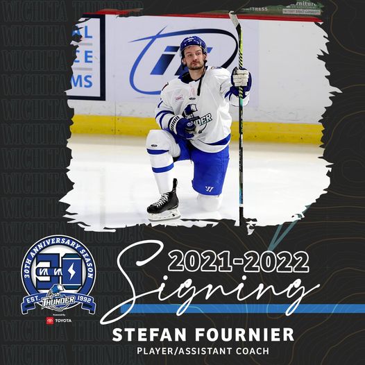WICHITA, KS – The Wichita Thunder, ECHL affiliate of the National Hockey League’s Edmonton Oilers and American Hockey League’s Bakersfield Condors, are excited to announce the re-signing of veteran forward Stefan Fournier for the 2021-22 season. Fournier will serve as the team’s Player/Assistant Coach for the third year in a row.