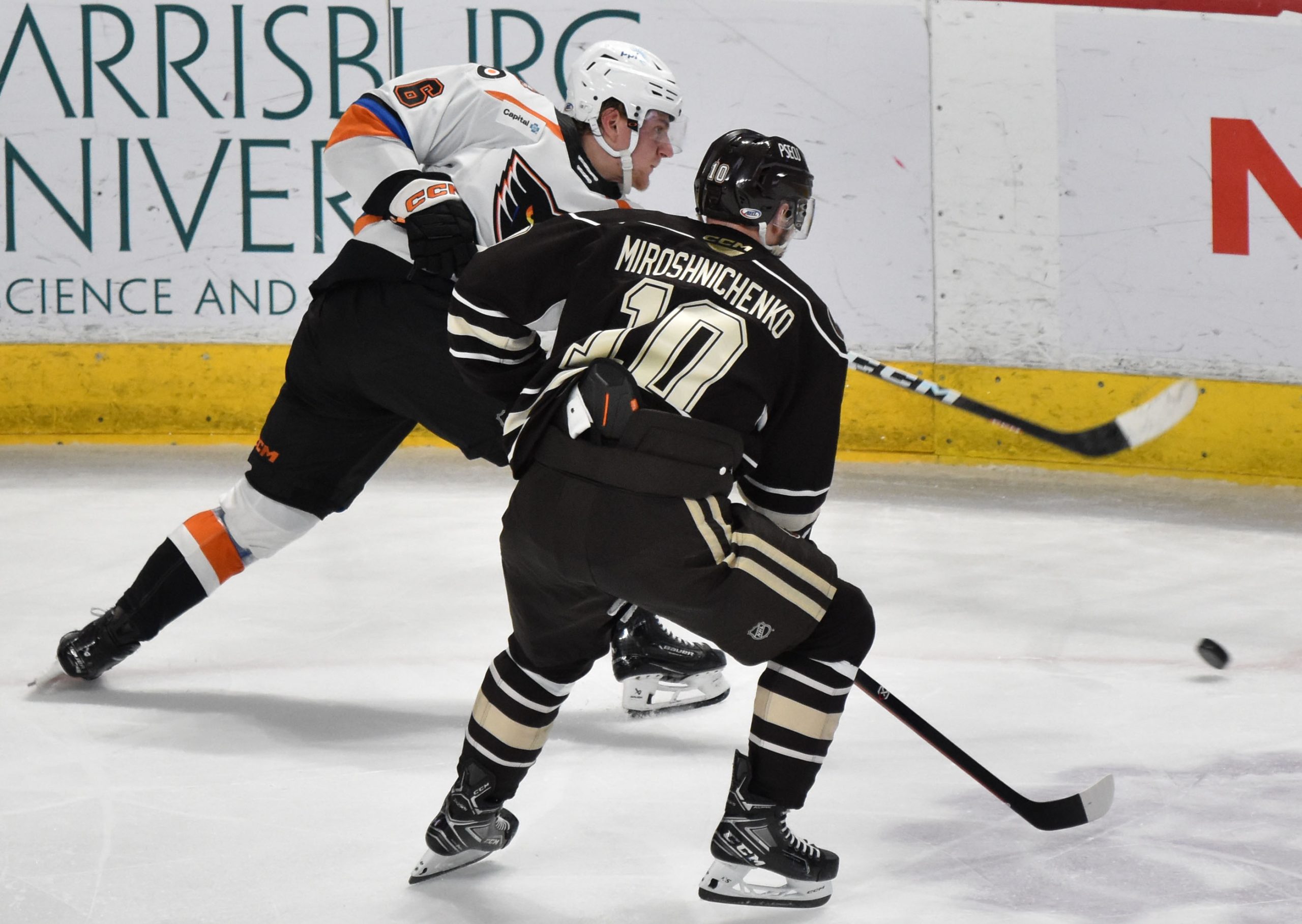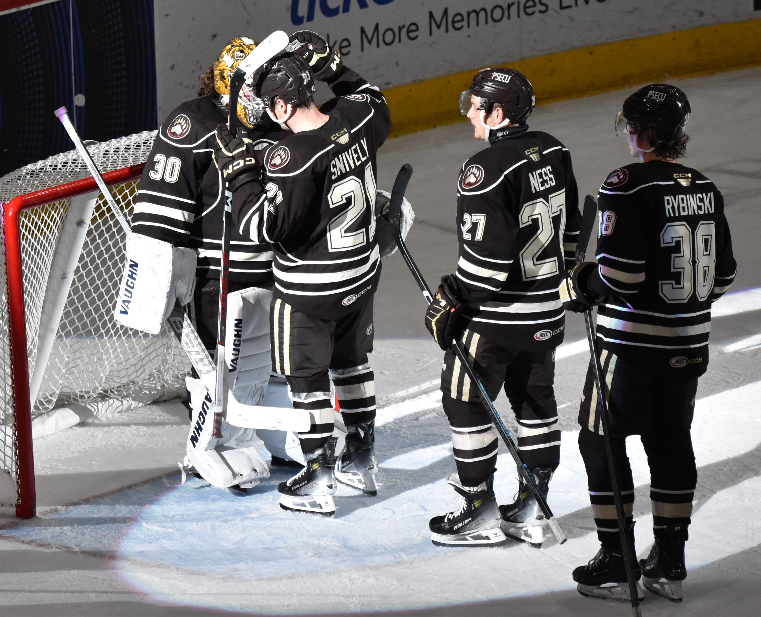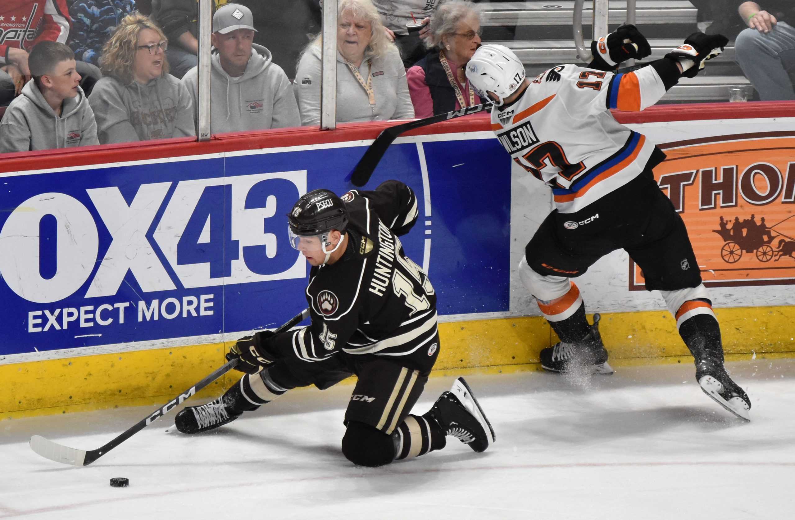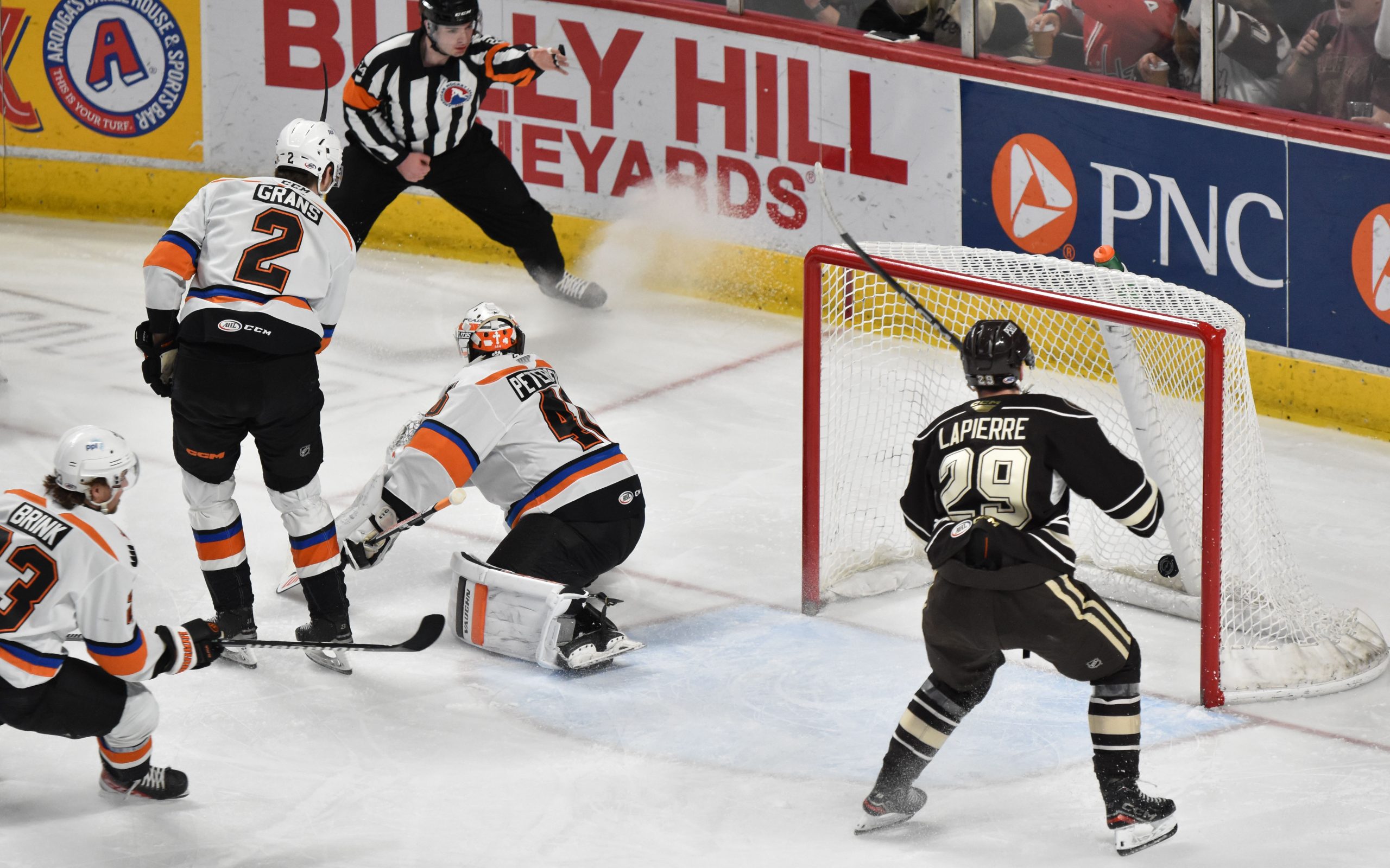 Alex Limoges then gave Hershey a power-play goal at 15:24 when he redirected a centering feed from Hendrix Lapierre behind Petersen’s glove side. Frank picked up a secondary helper, giving the forward his third point of the evening.