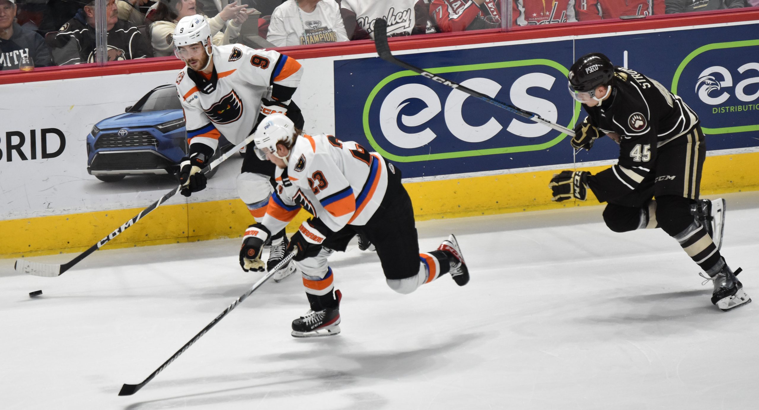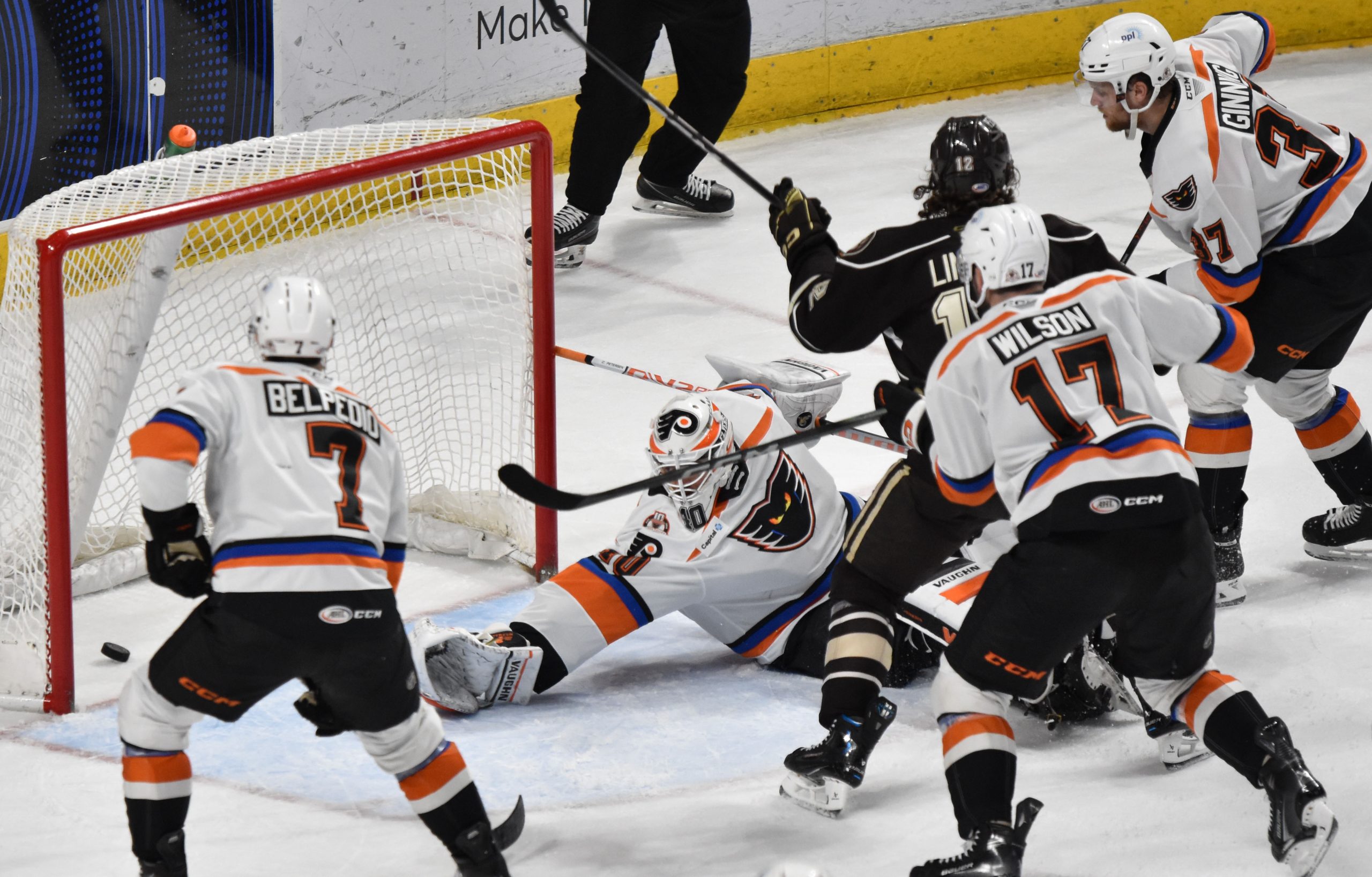Hunter McDonald put the Phantoms on the board at 18:45 when he chipped the puck past a screened Hunter Shepard.