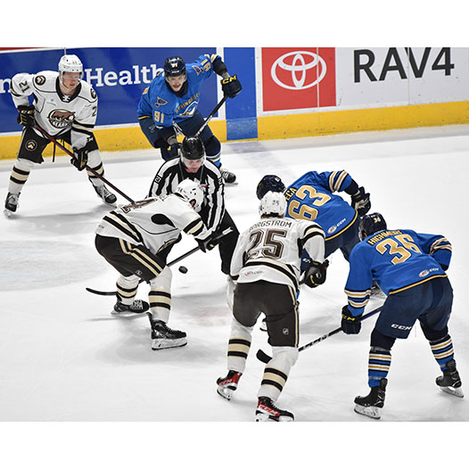 Frank netted his second of the evening at 1:01 of the third when he broke up the right side and roofed a shot over the glove of Hofer. Sgarbossa and Gabriel Carlsson earned assists.