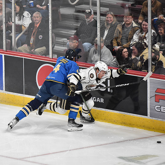 Frank pushed his team-leading goal totals to 14 on the season at 18:02 when he swatted in a rebound from Day behind Hofer. Sgarbossa earned the secondary helper on the goal.