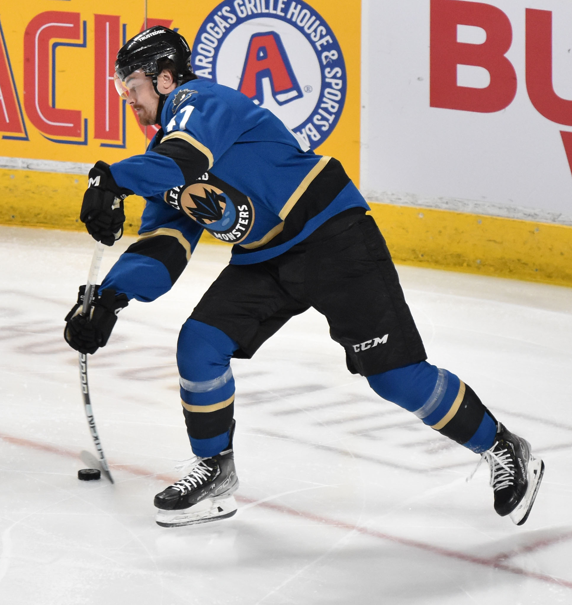 Sgarbossa made it 4-0 at 7:37 when the Monsters attempted to rim the puck around the glass in the Hershey zone, but the puck caromed off the glass into the slot, where Frank was able to nudge it ahead to Sgarbossa, who sped in on a breakaway and snapped a shot past the blocker of Cajan for his fifth of the season. For Frank, his third assist and fourth point of the night equaled his career single-game highs.