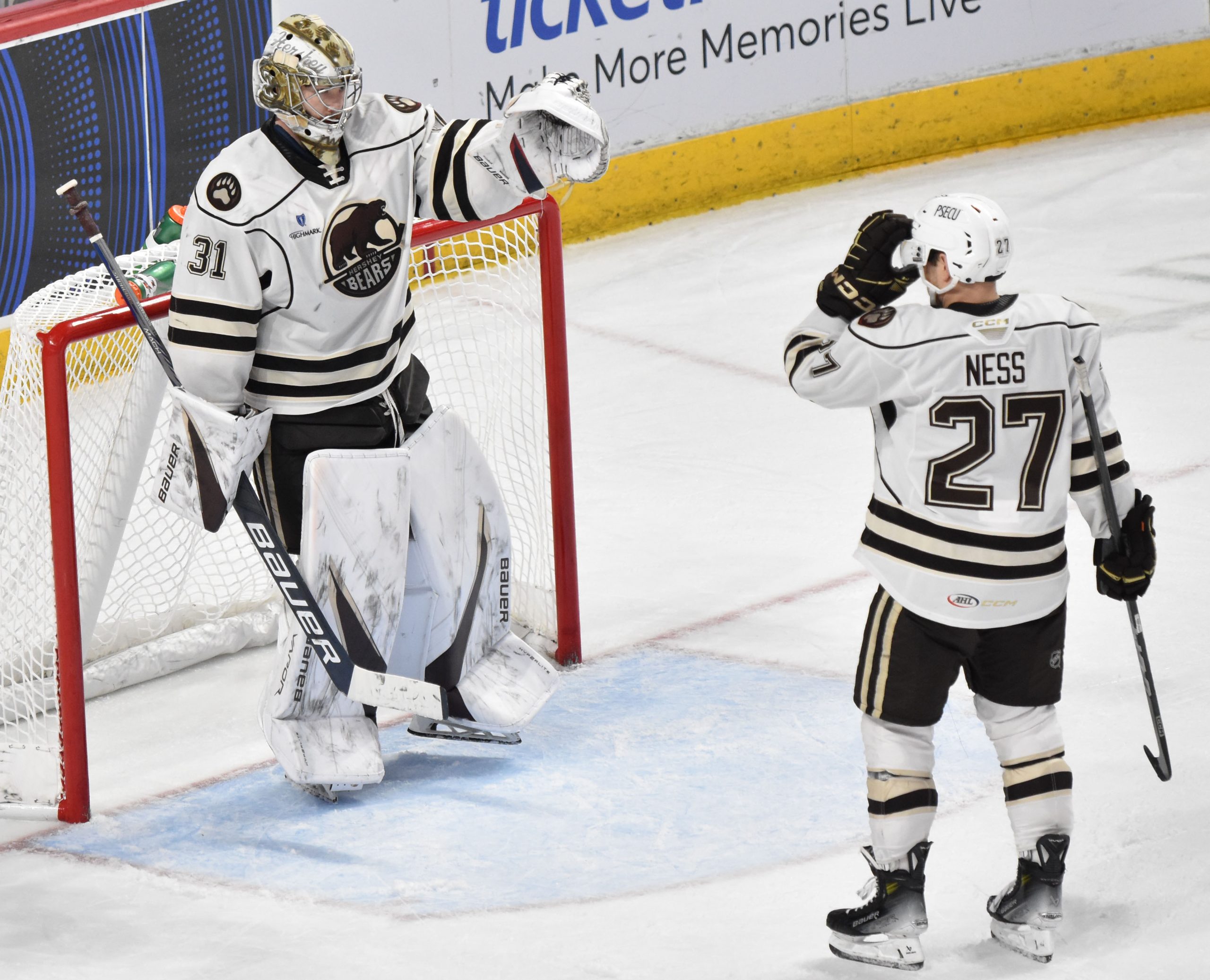 Ethen Frank enjoyed a four-point night and Clay Stevenson earned his league-leading fourth shutout of the season, as the Hershey Bears (19-5-0-0) got back in the win column with a 6-0 victory over the Cleveland Monsters (14-7-1-0) on Saturday night at GIANT Center. The victory marked Hershey’s first game at home since Nov. 26; the Bears extended their win streak on home ice to five games.