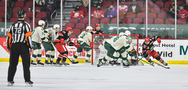 Keaton Thompson got it back for the Wild at the 13:58 mark, beating Kevin Boyle on a backhand from the bottom of the right circle to trim Iowa’s deficit back to one, but Barber answered less than two minutes later to make it a 3-1 game. In the high slot, Barber took a pass from Gustav Lindstrom at the right point, turned and ripped a shot past Jones’ glove for his team-high 10th goal of the campaign, tied for second-most in the AHL.