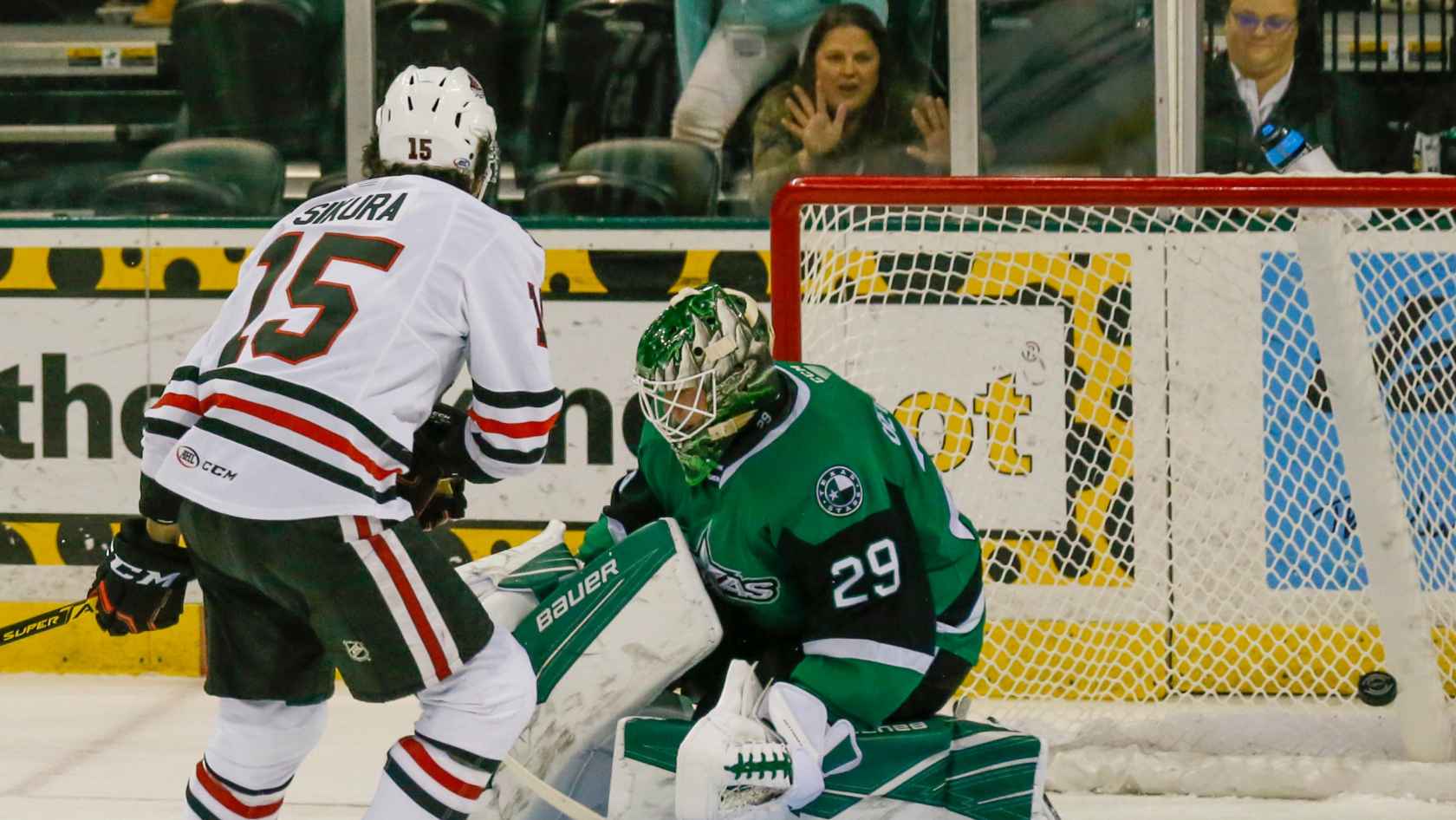 After a scoreless overtime period, the IceHogs and the Stars moved into the shootout. Collin Delia stood tall in net during the breakaway contest, stopping all four Texas shooters. In the fourth round, Dylan Sikura skated wide to the left, moved into the slot and snapped a wrister past Oettinger’s blocker hand to win it for the IceHogs.