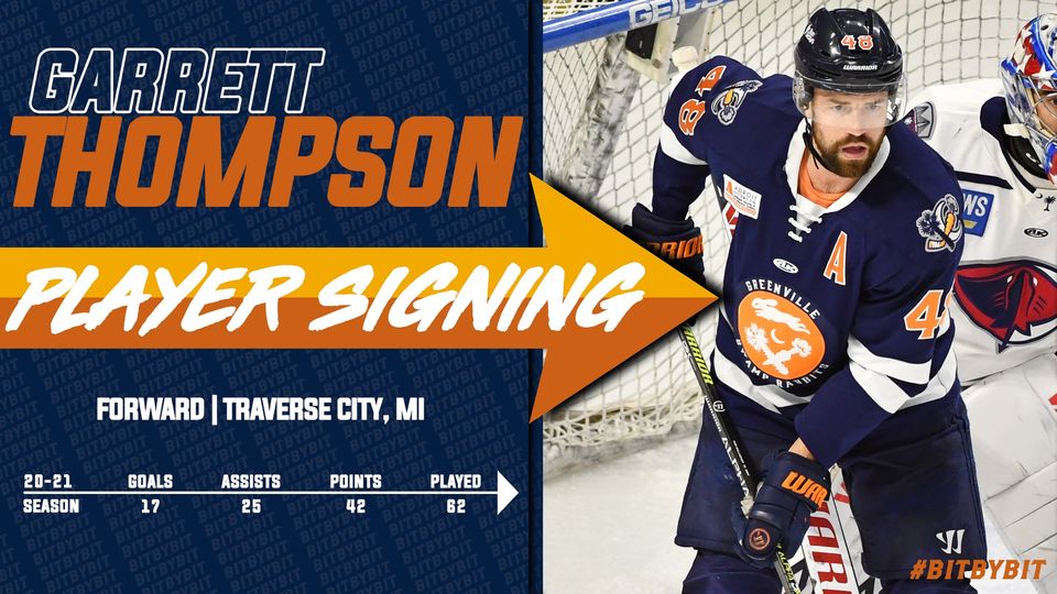 GREENVILLE, SC – The Greenville Swamp Rabbits announced that veteran forward Garrett Thompson has re-signed with the team ahead of the 2021-22 season.
