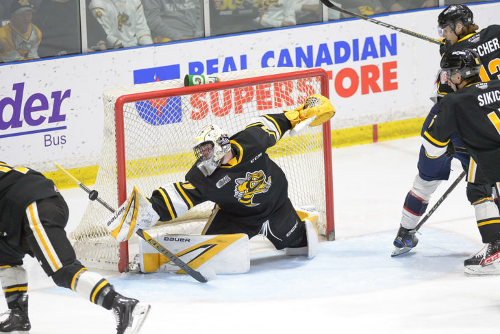beat the Saginaw Spirit 3-0 in Game 1 of the Western Conference Semi-Finals, before another loud and sold-out crowd of 4,320 on Friday night, at the Progressive Auto Sales Arena.