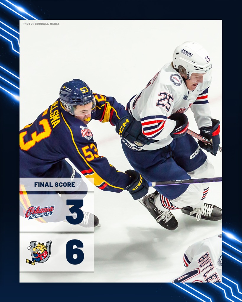 Oshawa, Ont., – Off the heels of a 5-2 defeat to their rivals, the Peterborough Petes, the Generals were in Barrie on Saturday night hoping to get back on track with a win.