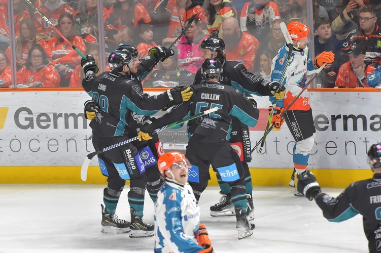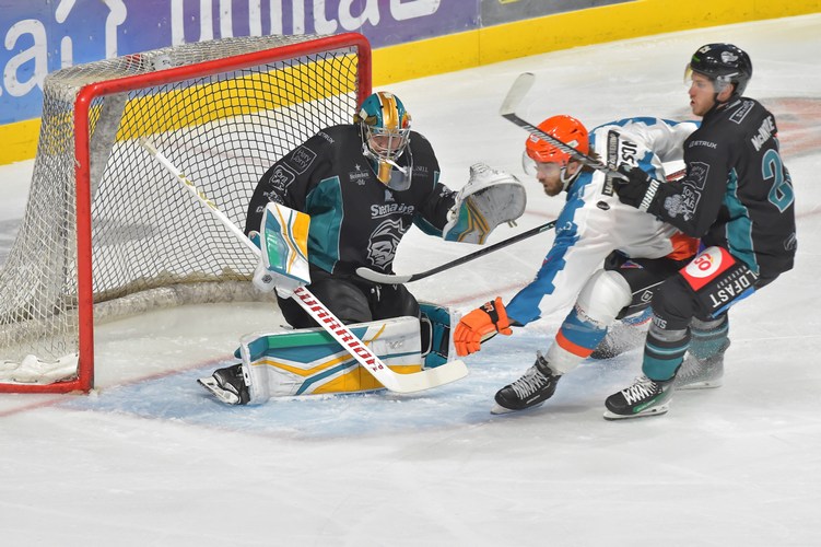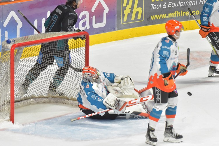 Things burst into life in period two as the Giants raced into a three-goal lead. 3:47 into the second, the Giants broke on a rush where Jacob Friend’s saucer pass went over a diving Niklas Nevalainen to allow Matt McLeod to fire home and double the Giants’ advantage. Under three minutes later, Ciaran Long’s shot on a 2-on-1 snuck through Greenfield’s pads to put the visitors three ahead.