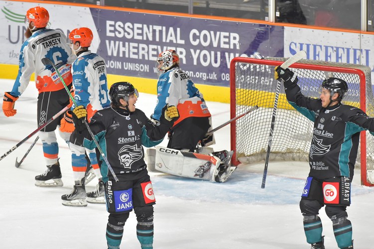 Belfast Giants got their first victory of the season over Sheffield with a 5-2 in front of 7,441 fans at the Utilita Arena, inflicting the Steelers’ second home defeat in a row – the first time that’s happened to the league leaders this season.